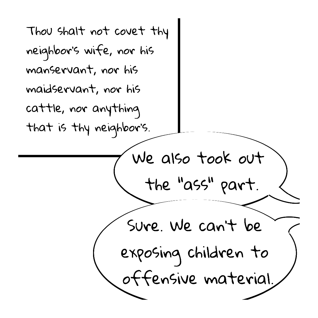 I mean, yes, it's terrible, it's tyranny, it's anti-religious-freedom. But it's also using the worst Bible translation and then cutting parts out.